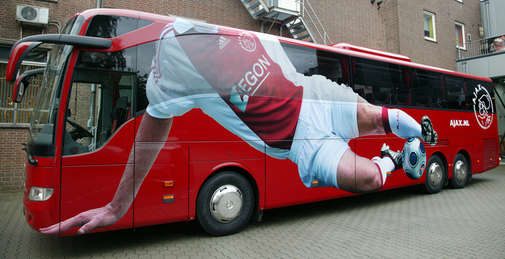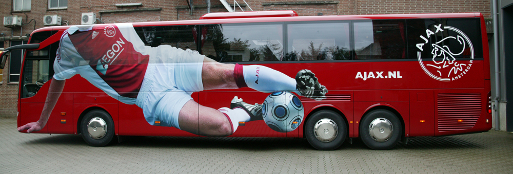 Wij hebben door de jaren heen al heel wat Ajax spelersbussen mogen plakken.